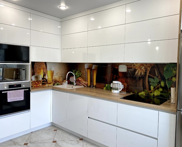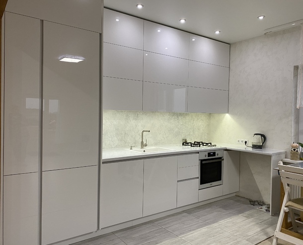 Акриловые кухни — самый популярный, функциональный и безопасный для здоровья вид кухонь на данный момент. В отличие от пластика, древесины, ПВХ-пленки и эмалей, акрил обладает прекрасными техническими характеристиками и наиболее приятным внешним видом, которые являются неотъемлемой частью любой современной кухни.